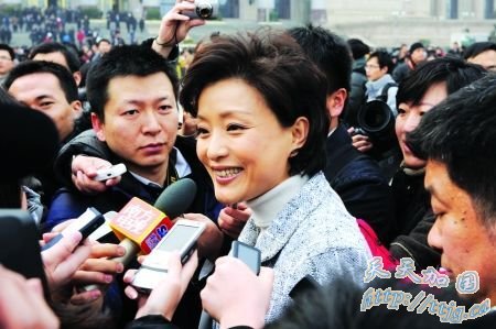 昨日,杨澜委员在天安门广场接受记者采访