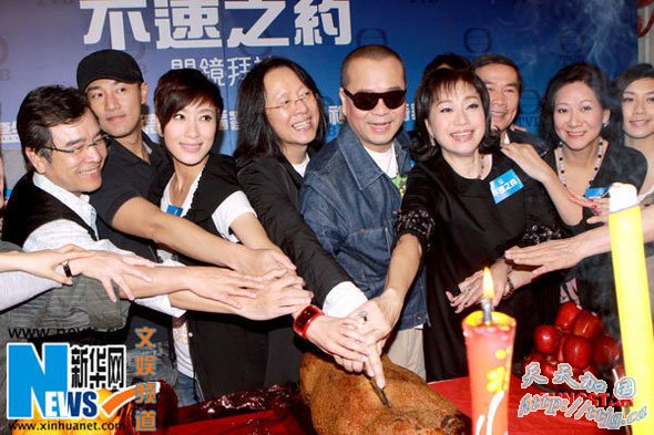 林峰、杨怡及欧阳震华(Bobby)等,3日出席新剧《不速之约》拜神仪式。