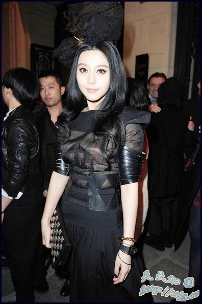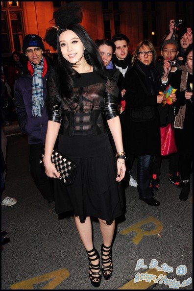 范冰冰于巴黎时间日前(3月6日)在当地欣赏时装秀,穿上黑色透视装的她,内衬肉色三角锥体Bra(文胸),有型又新潮。