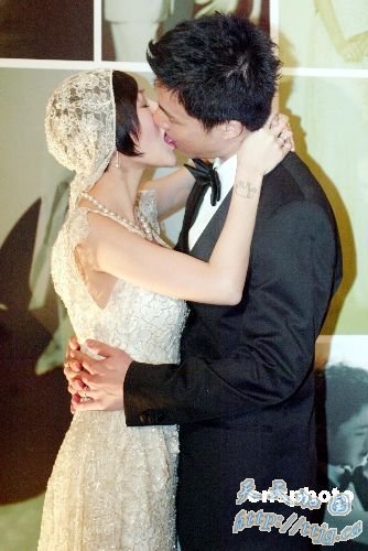 台湾著名艺人“小S”徐熙娣的订婚典礼在台北举行,在仪式上与未婚夫许雅钧激情舌吻。