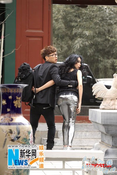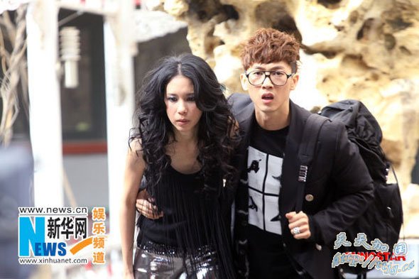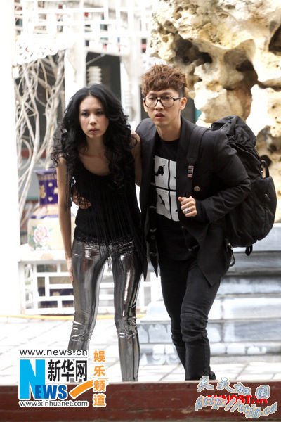 3月22日,已经签约华谊兄弟音乐公司的韩国歌手张佑赫(右),携手香港歌手莫文蔚,在北京拍摄张佑赫2010北京演唱会的宣传片。新华社发