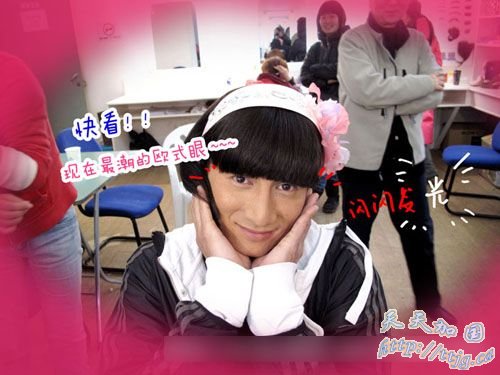 近日,吴奇隆一改往日帅气形象,在两位好友的恶整下化身可爱花仙子,让人忍俊不禁。前日,他在博客上公布了这组搞怪照片。