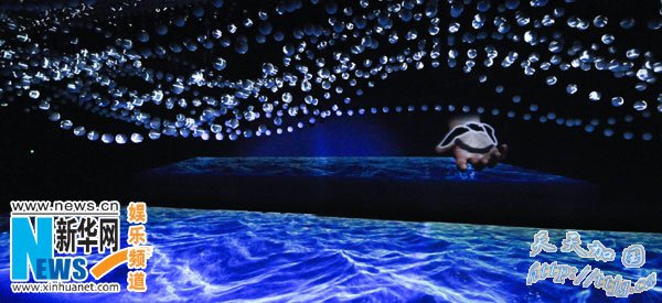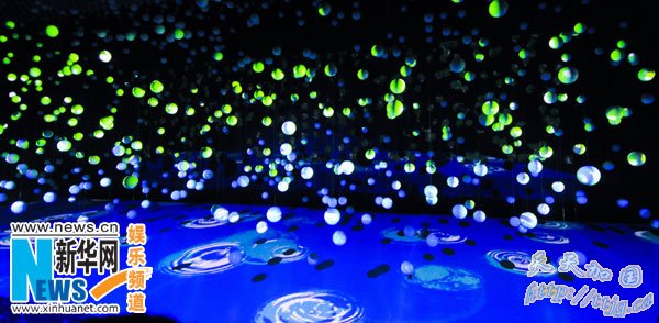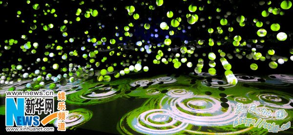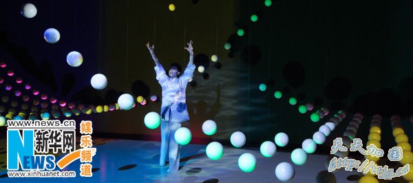4月20日,一场被称作“活力矩阵”高潮秀的节目在上海世博会中国民营企业联合馆首演。当天,以“无限活力”作为建造及创意出发点的唯一民营企业自建馆— 中国民营企业联合馆开始试运营,由樊跃和王潮歌担任总导演的“活力矩阵”高潮秀举行首演仪式并成为亮点。在为时7分种的高潮秀表演中,由浮球组成的矩阵,在音乐的起伏中,不断变幻结构、画面和运动轨迹来演绎四季,歌颂生命,将高科技与艺术表演融为一体,给观众带来奇妙感受。据悉,上海世博会开幕后,民企馆高潮秀每天上演30-55场。新华社记者王建华 摄