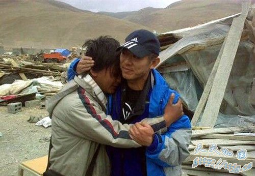 李连杰与结古镇孤儿院院长拥抱