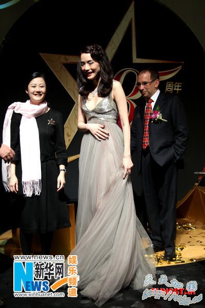 4月23日,舒淇以一袭低胸晚装亮相上海,参加其代言品牌的85周年庆典。