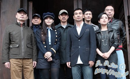 《赵氏孤儿》剧组合影。从左到右为:葛优、王学圻、范冰冰、张丰毅、赵文卓、黄晓明、陈红、陈凯歌。