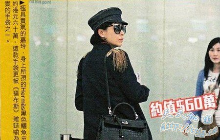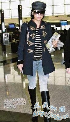 现身机场的嘉玲在助手陪同下,以一身潮爆的军look,手持修心养性秘笈