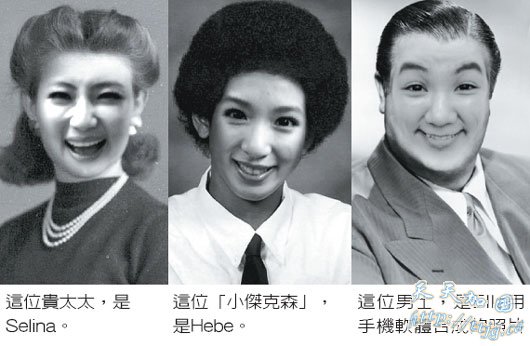 而S.H.E的高收入,则是辛苦工作换来的,上周末参加北京的颁奖典礼后,睡不到 3小时,又赶往长沙为新专辑宣传。都已经睡不够了,近来迷上手机自拍的3人还不停地用复古合成拍照软件恶搞自己的照片,Ella变身为脑满肠肥的富商,用力看才发现隐藏在满脸横肉下的陈小姐;个性派的Hebe顶着小黑人头,大小姐Selina则是老了也要当贵夫人。