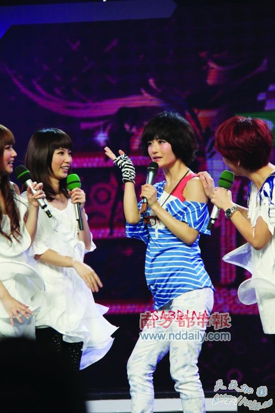4月26日 读者所提供的谢娜在《快乐大本营》中的照片,小腹严重隆起。