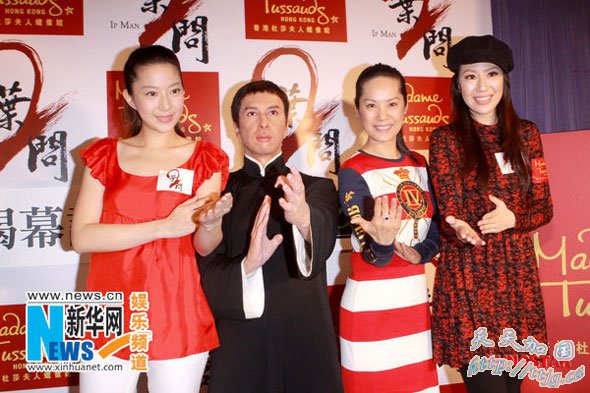 甄子丹30日到香港山顶杜莎夫人蜡像馆出席蜡像揭幕仪式,这是选用了子丹代表作的《叶问》造型,太太汪诗诗及岳父岳母、汪圆圆及表妹也有到贺,众人更一起摆出《叶问》的咏春姿势。
