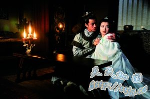 吕布和貂蝉第一次见面在第二集就完成,两人分别有一个“回眸一笑”,刻画出美女英雄一见钟情的感觉。婚后最常见的镜头就是吕布卧在榻上,观赏貂蝉在面前翩翩起舞。吕布死后,貂蝉为他收尸的情节相当催泪。
