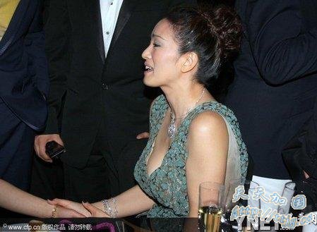 2010年5月4日讯,上海,华人巨星巩 俐近日在上海出席社交晚宴,深V打扮的她全身珠宝,显得雍容华贵,与老外高层一直相谈甚欢,现场,她频频与身边老外兴起时拥抱、贴面,亦有许多嘉宾争相与 其合影,巩俐一一满足,大秀春光。不过吃东西时巩俐毫不顾忌显出豪放吃相,还露出怪异表情,不知是不是喝醉了,巨星仪态尽失。