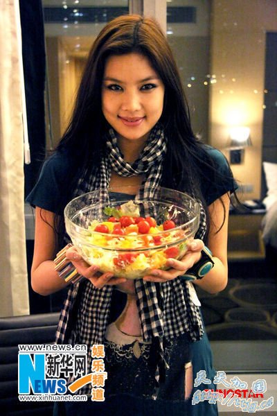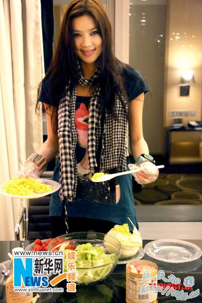 乐基儿还很体贴细心,她亲自带备了材料现场制作沙拉给工作人员品尝,众人享用过后均大赞乐基儿自制的沙拉清甜可口。