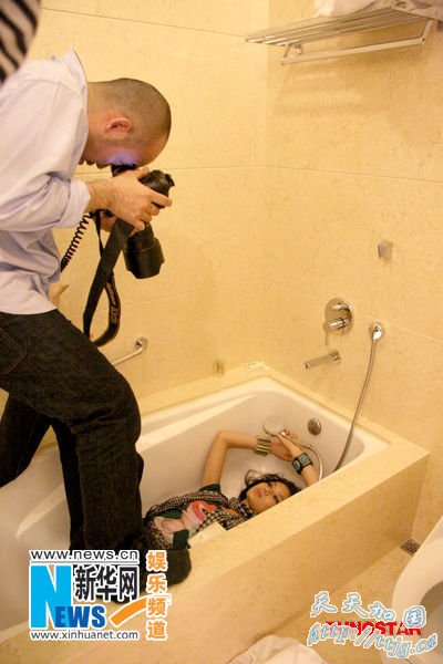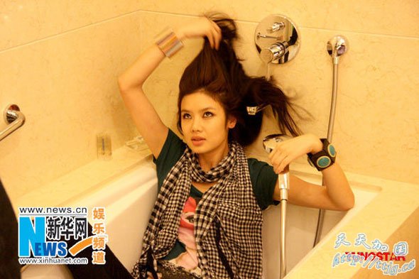 本次拍广告有舒服的一面,也有惨痛的一面,拍摄期间乐基儿突然大叫起来,竟是喷头管的缝隙扯住了她的秀发。