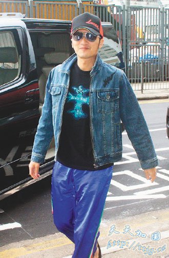 谢霆锋头戴Lucas帽子,忙着抢奶粉钱。