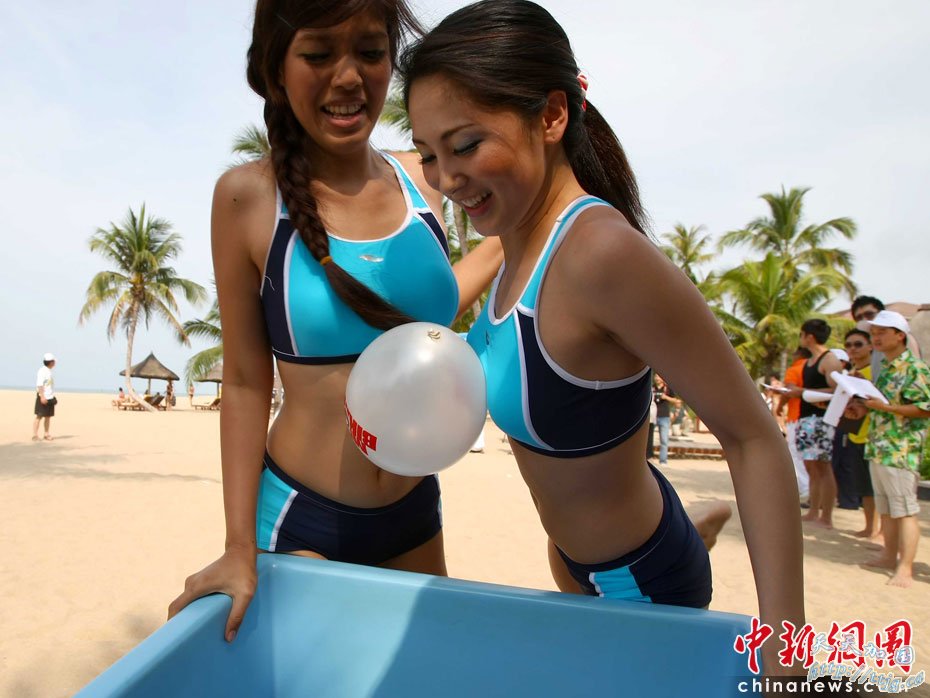 (责任编辑:小芬)5月22日,一场沙滩趣味运动会在三亚海边举行,全球64位比基尼佳丽悉数登场,展现自己...