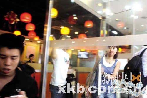 约一个半小时之后,星爷与一身穿墨绿色T恤的中年女性勾肩搭背地走出包房,显得非常高兴,身后则紧跟着一位身穿蓝色吊带的美女以及两位看似助理的工作人员。发现记者后,星爷火速松开搭在中年女性身上的手臂,一行人走出茶餐厅。而蓝色吊带美女则连忙拉开与星爷的距离,显得非常小心。记者注意到,该美女模样清纯,与刚出道时的张柏芝、黄圣依以及张雨绮还颇有几分相似,应该是星爷喜欢的类型。