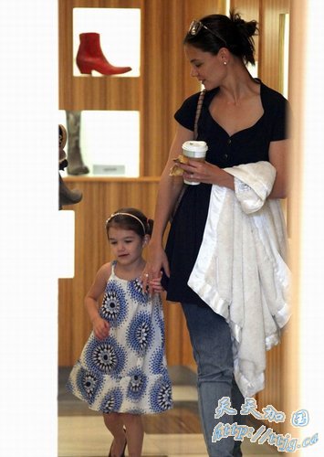 5月23日(周日),阿汤嫂凯蒂·霍尔姆斯领着4岁的女儿苏瑞一起在纽约的巴尼斯精品店购物。苏瑞当天身穿白底蓝花的连衣裙,清爽乖巧。之前阿汤哥接受采访时曾提到女儿的品味很好,看起来小家伙也很喜欢逛街买东西,和妈妈挑好看的鞋子,一点也没有累的感觉。