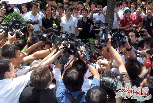 5月26日上午,富士康科技集团总裁郭台铭会见海内外200多名媒体记者,并主动带记者参观社区、厂区、车间、宿舍楼、员工关爱中心等,郭台铭所到之处刮起阵阵“旋风”,被媒体记者围堵追访。