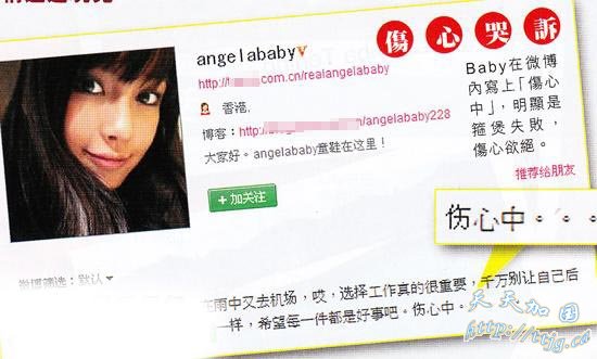 Angelababy在微博一句“伤心中……”来表达她和男友黄晓明玩完了。