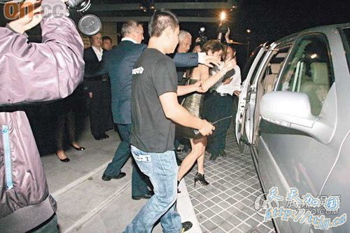 余文乐、吴彦祖、杨紫琼、任贤齐、吴宇森夫妇、郑雨盛、徐熙媛(大S)及尔冬升夫妇等出席上海国际电影节开幕礼后,晚上十点左右即转场到当地香港广场的Ascott Shanghai酒店吃饭,吃至今晨一点左右才“散伙”。其中任贤齐于凌晨十二点左右率先离开,脚步浮浮的他一见传媒即忍不住笑说:“我饮醉了!不好意思!”相隔四十五分钟后,其它人相继离开,杨紫琼离开时更需要身旁两名外国友人陪伴,她更躲到友人身后作开玩笑状,似乎略带醉意。杨紫琼离开时还发生小插曲,她行至小石级时,未知是因为醉意还是不为意,她不慎摔了一下,幸友人当即扶着她才不致出丑人前。