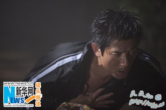 这组剧照是郭富城即跳完香港公海,漂流数小时后,被冲到了岸边,导演陈木胜为了配合郭富城中毒的剧情,就找了一处很不像香港的水域拍摄,且是被污染的水域,就挑中了位于香港码头,一处排放工业废水的排污口,全香港各种有害的工业污染物质都从这里排出,从郭富城旁边的石头能够看出,此处水域污染很严重,这种状态映射着影片中的生化危机,也不由让人联想到早前英石油在美国墨西哥湾的原油泄漏事件,造成了美国历史上最严重的生态灾难,全球各类生化危机着实令人忧虑。从组图中看出,软弱无力的郭富城反复在污水中挣扎,俨然就是在污水中洗澡,郭天王中毒作呕的表演也足以让观众感到惊叹!