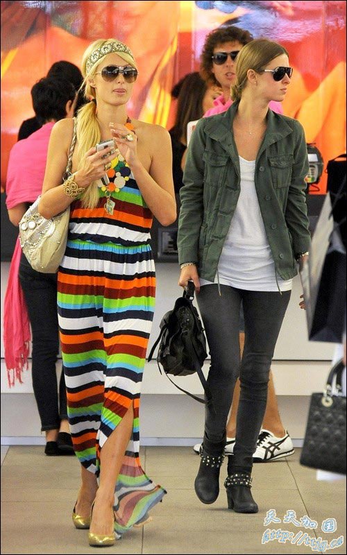街拍女王帕丽斯·希尔顿最新街拍出炉了,这位走在时尚尖端的拜金女,此次穿起了夏季一定会流行的条纹连身长裙。区别于黑白条纹的是,希尔顿选择了色彩斑斓的条纹,让整个人更符合夏日的感觉。脚