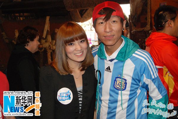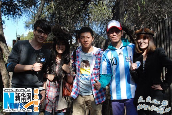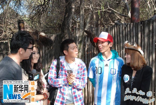 羽泉组合成员陈羽凡身穿阿根廷10号球员梅西的队服分外惹眼。在观看土著音乐歌舞的表演时,龚绮和王娇和羽泉组合一同坐在观众席中,和两位偶像明星有了一次亲密接触。羽泉组合似乎也很陶醉于南非的民族音乐中。陈羽凡甚至还和两位宝贝一起,带着南非土著头饰,和南非少数民族们跳起民族舞蹈。