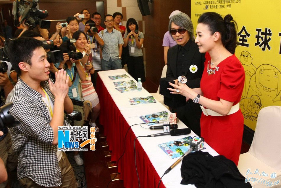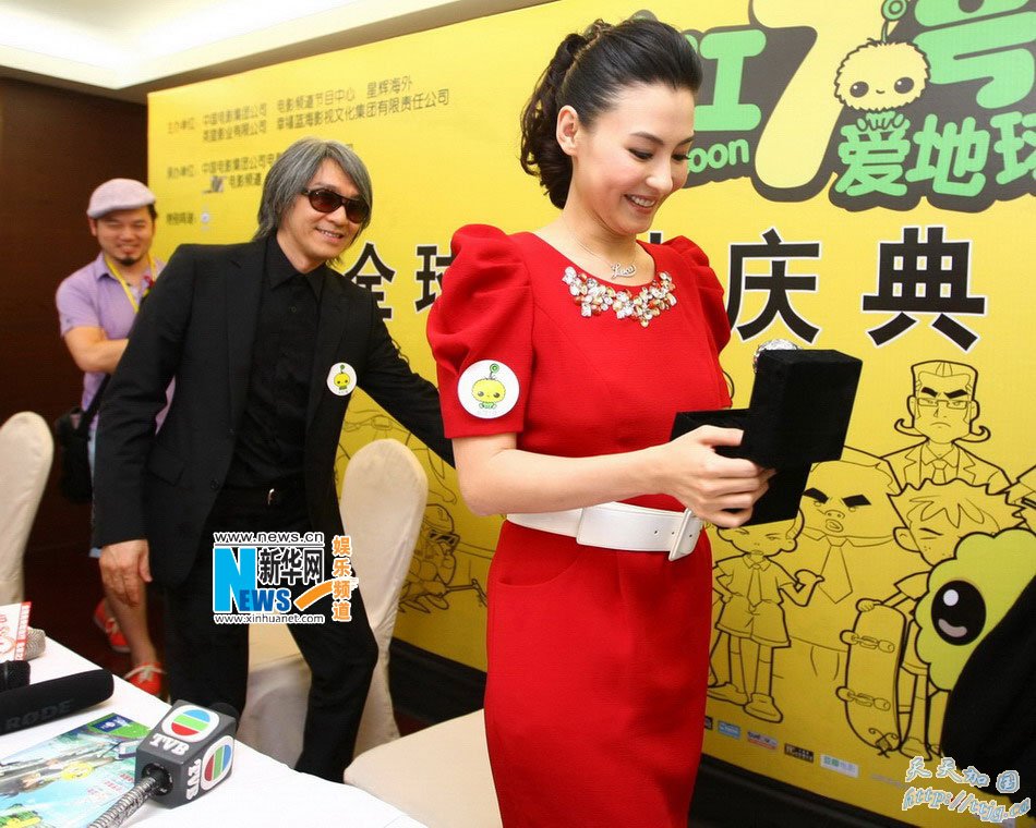 张柏芝亮相京城遇男版杨丽娟,遭娱记表白送戒指 昨天,周星驰监制的首部动画片《长江七号爱地球》在京举行首映发布会,周星驰携主题曲演唱者张柏芝、导演袁建滔、配音演员徐娇出席。张柏芝的出席令现场非常轰动,采访结束后,一名男记者激动地拦住张柏芝,并送上一枚巨型“钻戒”,令现场一片骚动。 周星驰为该片宣传一直亲力亲为,他说:“无论是否成功,我都想继续做动画片,为中国动画产业出一份力。我认为中国应该有自己的动画片,而且将来一定会达到世界水准,那会是我的骄傲。”星爷称,他希望今后做一些让小朋友开心的卡通片,传达一些正面观念。 对于动画版《长江七号》的票房期待,星爷没有预计,“这只是我第一部动画,票房当然重要,但我最希望多些家庭观众来看。”张柏芝和儿子Lucas一起为电影献唱主题曲,昨天张柏芝到场,她说:“这次和 Lucas合唱很开心,是金钱也买不到的珍贵时刻,我的手机也换了这首歌当铃声。”张柏芝透露,本来不懂普通话的Lucas现在已经能唱几句标准的普通话歌词了。至于Lucas的酬金,张柏芝说钱不重要,最重要是能拍出好的动画片。 大家追问Lucas的片酬是否已经高过父母,张柏芝笑着说:“作为他父母,当然希望了,不过他还太小,估计有难度。”当天群访结束后,一位男记者手捧着一个盒子冲向张柏芝。他激动地打开盒子,里面是一枚巨型“钻戒”。这名男记者把这枚“钻戒”送给了张柏芝,他自称是超级粉丝,说当记者就是为了张柏芝,“你曾经送过一个同样的礼物给小S,你似乎很喜欢,所以我特意找了个一样的送给你。我很喜欢你,我当记者就是为了你。”这位记者的表白令全场哗然。