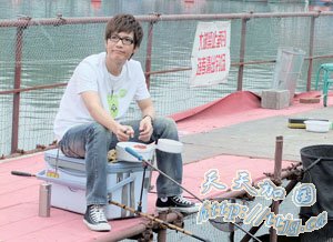 昨天下午,记者赶到莲花池公园时,只见陈楚生穿着黑色T恤,正坐在钓鱼池旁边全神贯注地盯着鱼池。