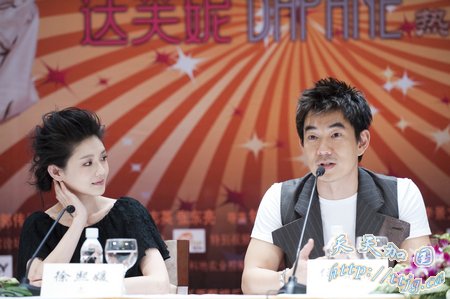 大S(左)和任贤齐在上海首映式上 早报见习记者 管开吉 图