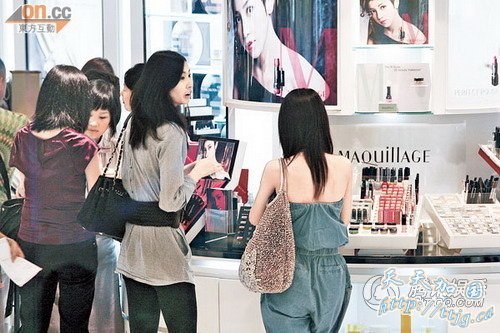 约半小时后,张舒雅及陈倩扬也结帐走人,她俩在附近商场逛街购物,先步入该处的连锁用品店,陈倩扬左挑右选终选购了一支约200元的芦荟护肤品。其后转逛化妆品专柜,张舒雅试完唇彩又试眼影,但斩获不多,两人最后各自离开。