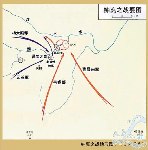 没过多久,元英和魏将杨大眼指挥魏军对梁军发起猛烈攻击,钟离之战打得异常激烈,韦睿趁淮水暴涨,以水军优势搭配火攻击溃魏军,元英脱身逃走。“魏军趋水死者十余万,斩首亦如之”。
