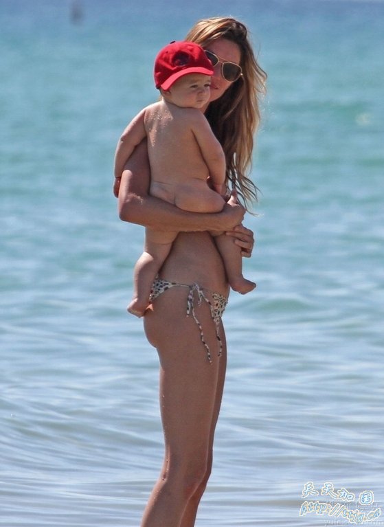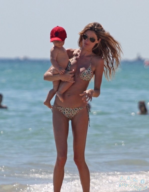 10月10日(周日),吉赛尔-邦辰抱着她可爱的儿子本杰明现身迈阿密海滩,当天30岁的吉赛尔-邦辰身穿比基尼,抱着儿子嬉水,大秀性感身材。