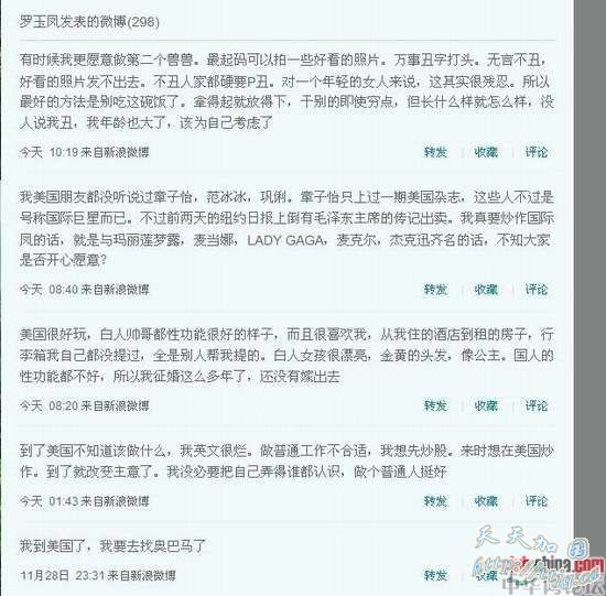 我美国朋友都没听说过章子怡,范冰冰,巩俐。章子怡只上过一期美国杂志,这些人不过是号称国际巨星而已。不过前两天的纽约日报上倒有Mao.ZD 主席的传记出卖。我真要炒作国际凤的话,就是与玛丽莲梦露,麦当娜,LADY GAGA,麦克尔,杰克迅齐名的话,不知大家是否开心愿意?