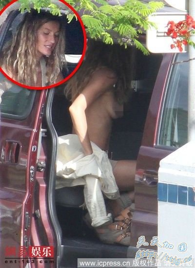 加勒比海圣特洛佩兹,超模吉赛尔·邦辰现身当地拍摄时尚大片。吉赛尔上保姆车换衣服但不关门,导致胸部和臀部尽现。