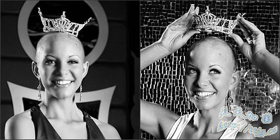 22 岁的美国姑娘凯拉·马特尔日前一举赢得“特拉华州小姐”选美头衔,她的当选随即在该州乃至全美掀起一股“凯拉热潮”。人们之所以对她如此痴迷不仅仅是因为她美丽的容颜,更重要的是她坚韧乐观的生活态度。原来,凯拉因自幼患有斑秃症而没有头发,她是美国历史上第一位“光头”选美冠军,如果一切顺利,她还有望成为首位“光头”的“美利坚小姐”(Miss America)。