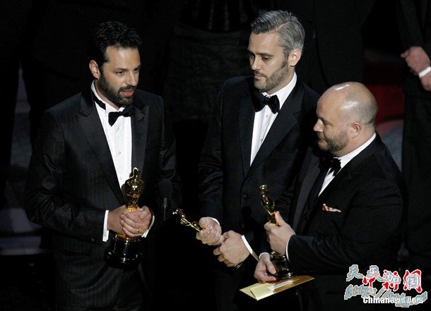 其他表演类奖项结果也毫无意外,《斗士》里的神经质“母子”梅丽莎·里奥和克里斯蒂安·贝尔再次分别拿下最佳女配角、最佳男配角。贝尔这边厢上台领奖,《金陵十三钗》方面迅速也发来贺电,有网友也不仅感叹张艺谋这回捡了大便宜。