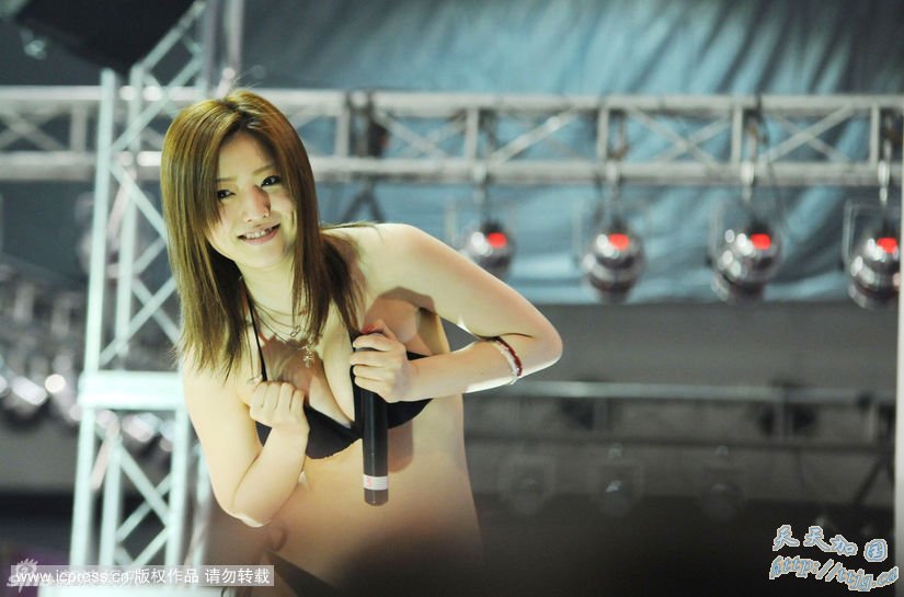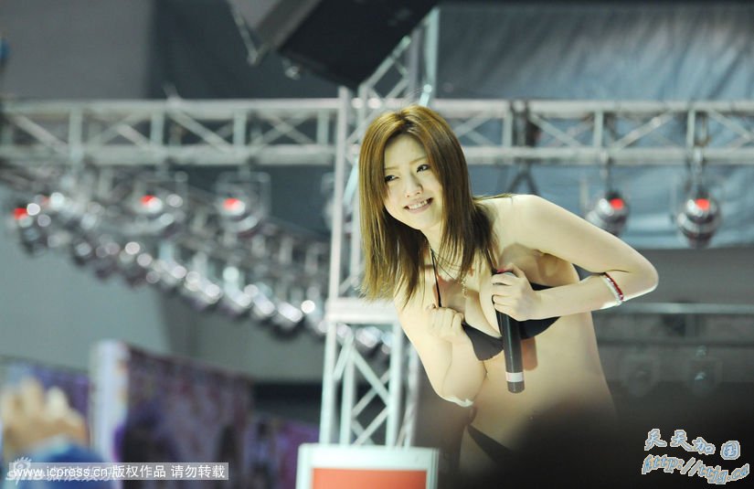 羽田爱竭尽所能展现火辣性感,最后竟然跳起了脱衣舞,脱到只剩内衣,还摆出各种姿势,让参观者当场“喷血”。