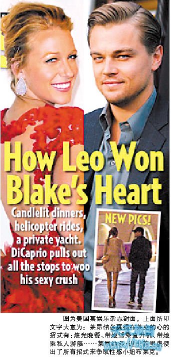 近日,好莱坞影星莱昂纳多·迪卡普里奥与布莱克·莱夫莉一同现身法国的里维埃拉,两人共进晚餐之后,手牵手在月色中漫步,这也是两人绯闻发生后,首次在公开场合做出此亲密举动,莱昂纳多的意图十分明显。值得一提的是,莱昂纳多不久前刚与相恋5年的前女友拉法莉告吹,布莱克之前还曾跟章子怡前男友Vivi传出绯闻。