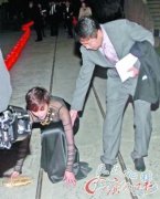 袁莉被长裙绊倒。 大洋网-广州日报4月2日报道 前日(3月31日),袁莉身穿黑色蕾丝礼服亮相某品牌的派对,在于冬的护送下走入内场,不过由于裙子太长,在路上绊...