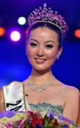 世界小姐中国总决赛冠军余声(中)、亚军战扬(左)、季军余薇薇(右)合影 来自俄罗斯的第58届世界小姐克谢尼娅苏克因诺娃给第59届世界小姐中国总决赛冠军余声...