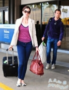 安妮海瑟薇近日与男友现身于洛杉矶的LAX机场,独自拖着行李,丝毫不用男友帮忙。白色西装外套和墨镜让安妮显得成熟稳重。尽管铅笔裤配上露出脚踝的平底鞋有加长美腿的效果,但安妮的这条仔裤却显得大腿有些丰腴,喜欢铅笔裤的MM们在搭配时也要考虑周全哦!红...