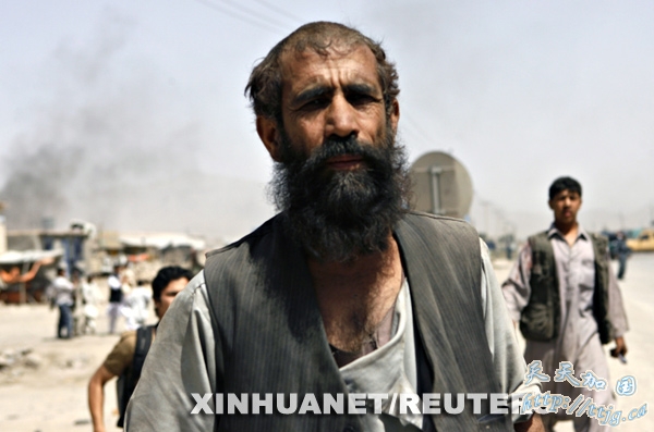 8月18日,在阿富汗首都喀布尔,一名男子离开爆炸袭击事件的事发现场。