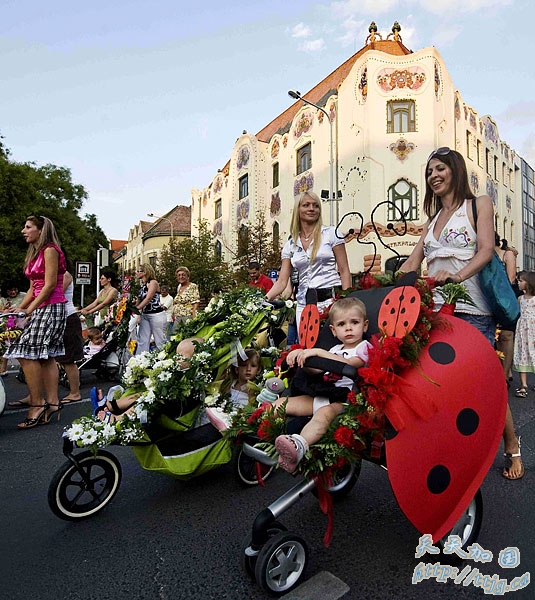 8月17日,在匈牙利凯奇凯梅特市文化节期间,年轻的妈妈们推着用鲜花装饰的婴儿车参加游行。当日,凯奇凯梅特市举行推婴儿车游行。该市1934年首次举办类似的游行活动,当时的口号是“凯奇凯梅特是水果和儿童的城市”。新华社发(乌伊瓦里·山多尔摄)