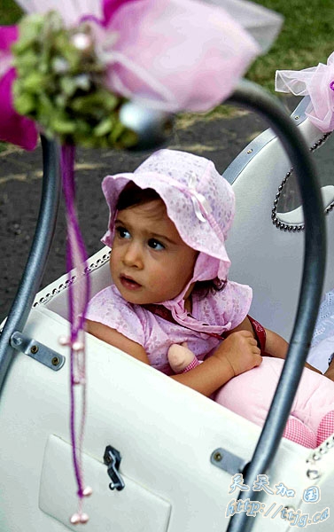 8月17日,在匈牙利凯奇凯梅特市文化节期间,一名婴儿坐着一辆经过改装的婴儿车参加游行。当日,凯奇凯梅特市举行推婴儿车游行。该市1934年首次举办类似的游行活动,当时的口号是“凯奇凯梅特是水果和儿童的城市”。新华社发(乌伊瓦里·山多尔摄)