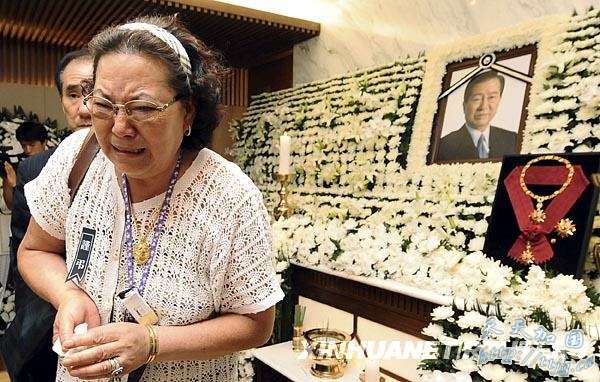 8月19日,在韩国首都首尔,一名韩国妇女向已故前总统金大中的遗像献花后痛哭。新华社/路透