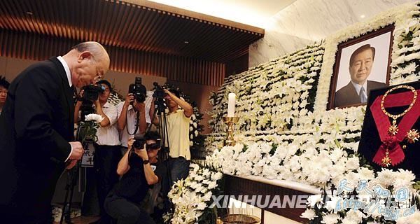 8月19日,韩国前总统全斗焕在首尔市塞弗伦斯医院的灵堂悼念前总统金大中。金大中于18日在首尔市中心的塞弗伦斯医院去世,享年85岁。新华社/纽西斯通讯社