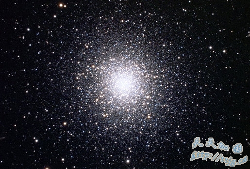 M13武仙座星簇距离地球大约25000光年,它看起来像个蜂箱。事实上它包含数十万颗恒星,而且大部分都挤在一个直径仅有几光年的球体里,而整个星簇的 直径超过100光年。利用双眼望远镜就能观测到这个星簇,但是只有利用大型望远镜才能真正看到它的壮观景象。现实中有150多个这样的星簇围绕银河运行, 但是M13武仙座星簇是最著名、最容易观测的一个。这张图片上显然展示了它核心附近的几乎所有恒星,你可以看到很多恒星呈红色,这是它们的年龄标志:该星 簇已经超过100亿岁。