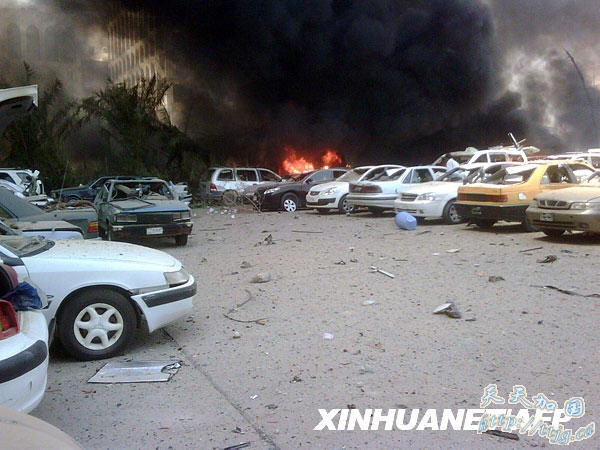 8月19日,在伊拉克首都巴格达伊外交部附近的停车场,被引爆的卡车冒出滚滚浓烟。伊拉克内政部19日发布的最新消息说,巴格达市中心当天发生的两起爆炸袭击事件已造成95人死亡、563人受伤。